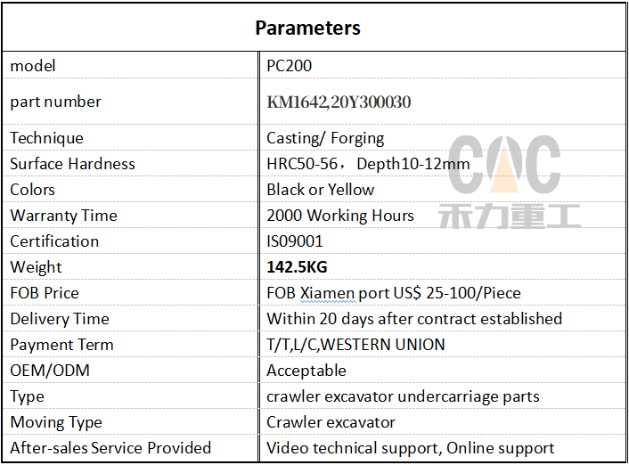 پیرامیټونه ماډل د PC200-8/EC210/R210/SE210 معرفي کول د برخې شمېره ۲۰Y-۳۲-۰۰۰۲۳،۱۴۵۳۰۳۶۱، ۹۳۱۹۶۳ تخنیک کاسټینګ / فورجینګ د سطحې سختوالی HRC50-56، ژوروالی 10-12 ملي متره رنګونه تور یا ژیړ د تضمین وخت ۲۰۰۰ کاري ساعتونه تصدیق د IS09001 معرفي کول وزن ۵۷۲ کیلو ګرامه د FOB قیمت د FOB ژیامین ۲۵-۱۰۰ امریکایي ډالر/ټوټه د لېږدون وخت د قرارداد له لاسلیک وروسته د ۲۰ ورځو دننه د تادیې موده ټي/ټي، لې/سي، لوېديځ اتحاد OEM/ODM د منلو وړ ډول د کرالر کیندنې لاندې برخې د حرکت ډول د کرولر ایکسکواتور د خرڅلاو وروسته خدمت چمتو شوی د ویډیو تخنیکي ملاتړ، آنلاین ملاتړ -